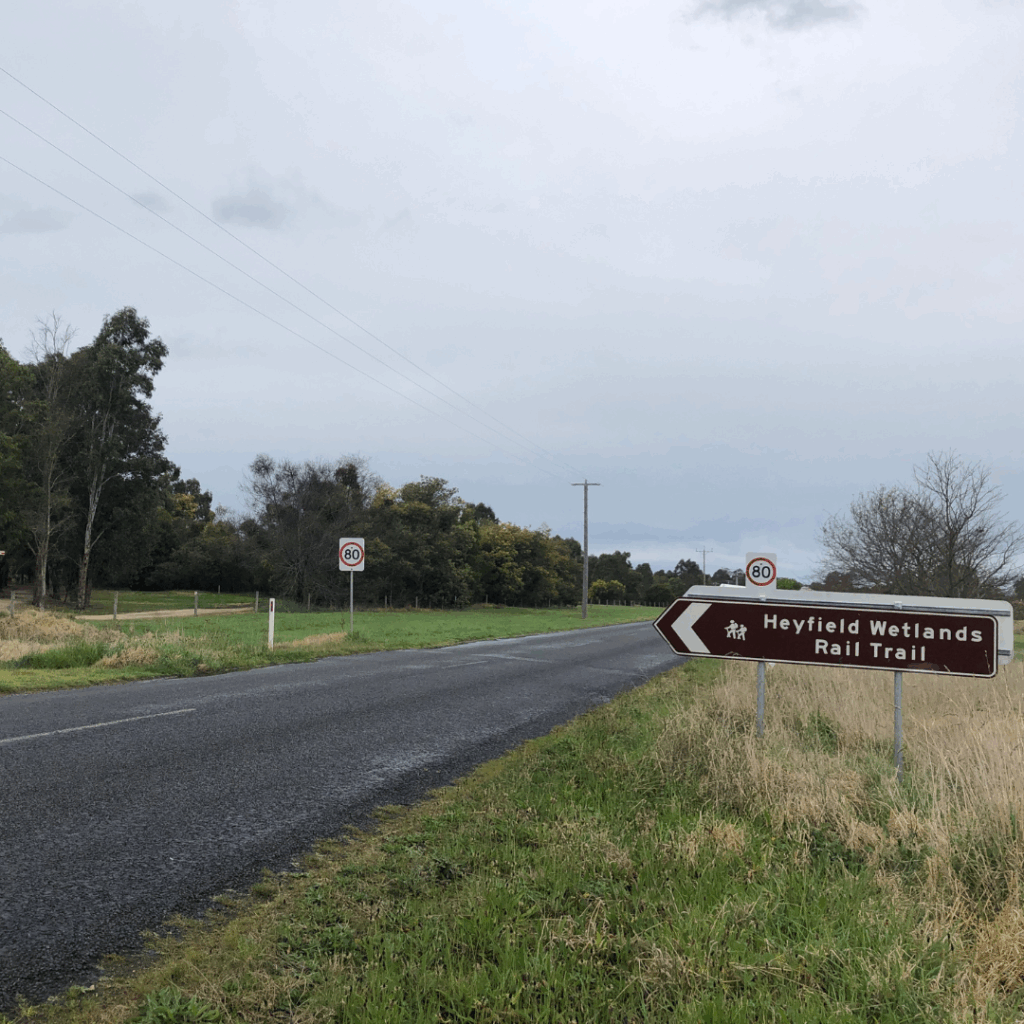 The alternate route for trail users entering Heyfield from the west is to turn onto Commercial Road and enter through the Heyfield Wetlands into town. However, our signage has been regularly vandalised or stolen, making navigation unclear at times. “We’d like the community to know that we are working on a safe and clear solution to this issue” say Helen.